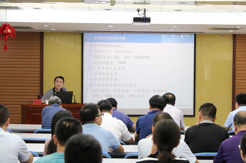 為進(jìn)一步促進(jìn)廣大干部職工對(duì)宏觀經(jīng)濟(jì)形勢的理解和掌握,8月15日下午,寧夏國投集團(tuán)2018年第五期“國投大講堂”開講。集團(tuán)公司黨委委員、副總經(jīng)理李軍作了題為《經(jīng)濟(jì)的變局與風(fēng)險(xiǎn)的管理》專題講座。
