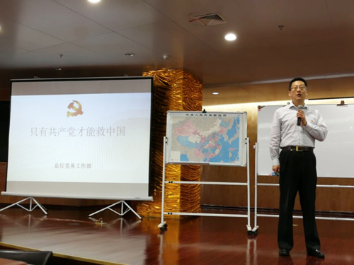 中國(guó)銀行總行黨務(wù)工作部副部長(zhǎng)王曄為參會(huì)人員講授了題為《只有共產(chǎn)黨才能救中國(guó)》的主題黨課。王曄副部長(zhǎng)從中國(guó)古代歷史出發(fā),運(yùn)用眾多歷史史實(shí)詳盡闡述了中國(guó)共產(chǎn)黨人的初心和中國(guó)共產(chǎn)黨的使命就是為中華民族謀復(fù)興、為中國(guó)人民謀幸福,進(jìn)而得出只有共產(chǎn)黨才能救中國(guó)的結(jié)論。整堂黨課主題鮮明、旁征博引,展現(xiàn)出一幅幅宏偉歷史畫(huà)卷,以真實(shí)生動(dòng)的事例再現(xiàn)了共產(chǎn)黨員對(duì)黨的信仰與忠誠(chéng),引發(fā)了參會(huì)人員的強(qiáng)烈共鳴。
