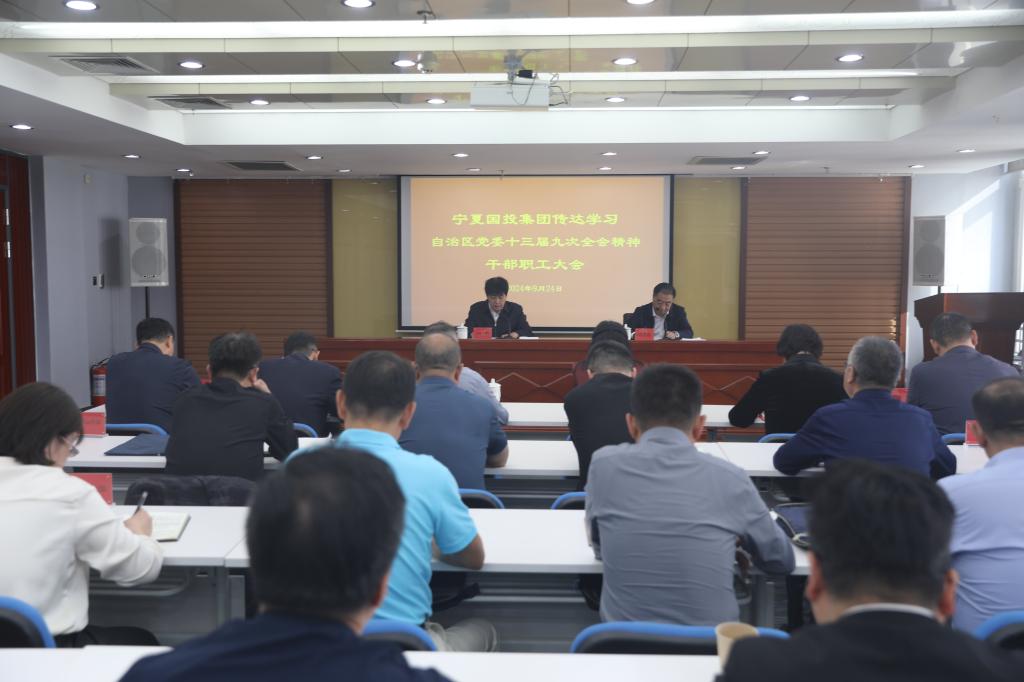 9月24日,寧夏國投集團(tuán)公司黨委召開干部職工大會(huì),傳達(dá)學(xué)習(xí)自治區(qū)黨委十三屆九次全會(huì)精神,研究部署集團(tuán)公司學(xué)習(xí)宣傳貫徹工作。集團(tuán)公司黨委書記、董事長楊舵主持會(huì)議并講話。