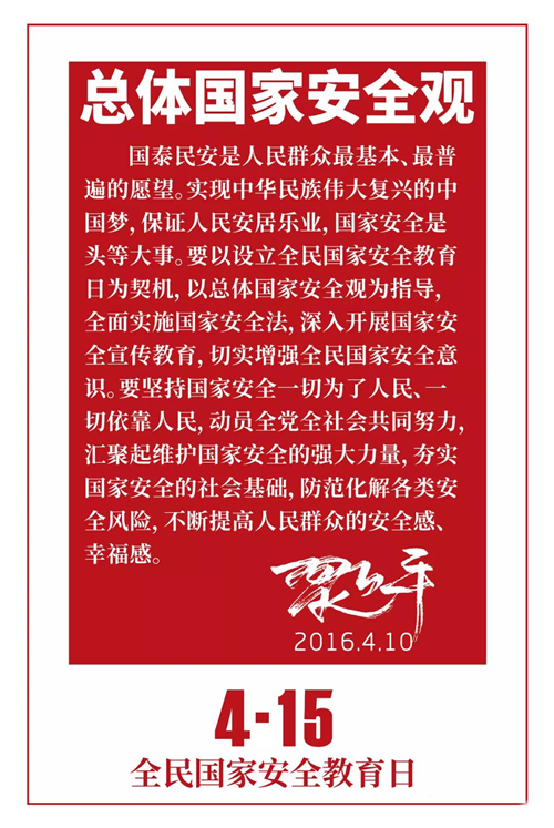 2020年4月15日,是我國第五個全民國家安全教育日。今年的主題是:堅持總體國家安全觀,統(tǒng)籌傳統(tǒng)安全和非傳統(tǒng)安全,為決勝全面建成小康社會提供堅強保障。