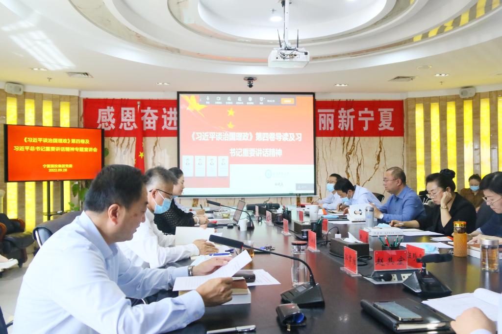 9月28日,寧夏國(guó)投集團(tuán)舉辦《習(xí)近平談治國(guó)理政》第四卷及習(xí)近平總書記重要講話精神專題宣講會(huì),邀請(qǐng)自治區(qū)宣講團(tuán)成員、北方民族大學(xué)黨委宣傳部副部長(zhǎng)徐曉美作專題宣講。會(huì)議以視頻形式舉辦,集團(tuán)本部及子企業(yè)90余名黨員聆聽(tīng)宣講。