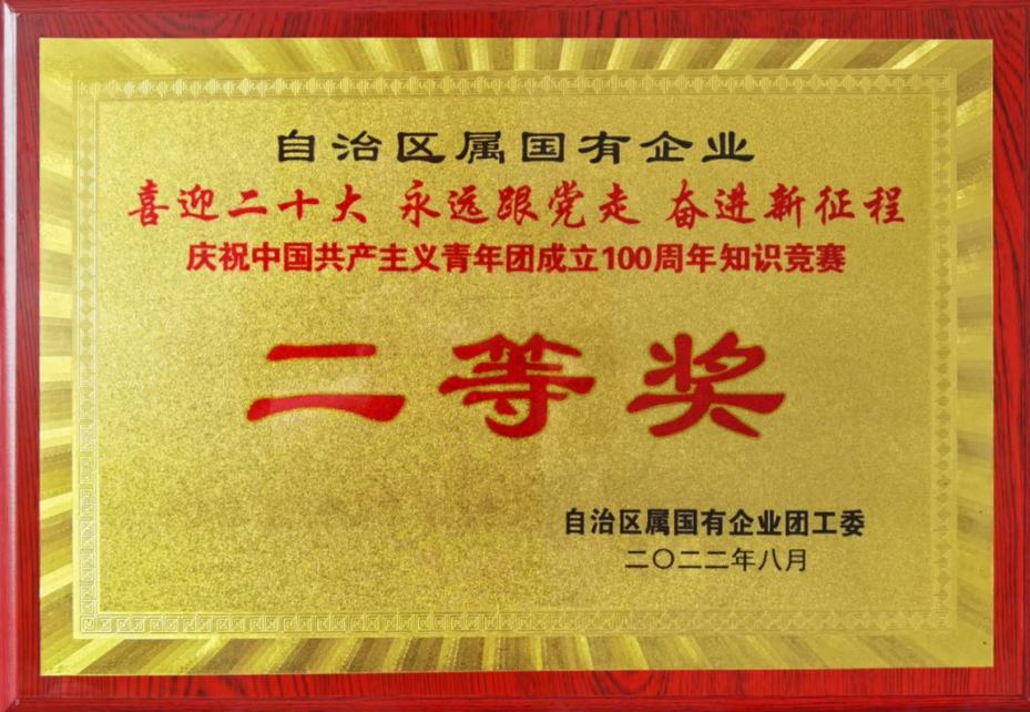 8月5日,自治區(qū)屬國有企業(yè)團(tuán)工委“喜迎二十大、永遠(yuǎn)跟黨走、奮進(jìn)新征程”慶祝中國共產(chǎn)主義青年團(tuán)成立100周年知識競賽成功舉辦,集團(tuán)公司代表隊(duì)榮獲比賽二等獎。
