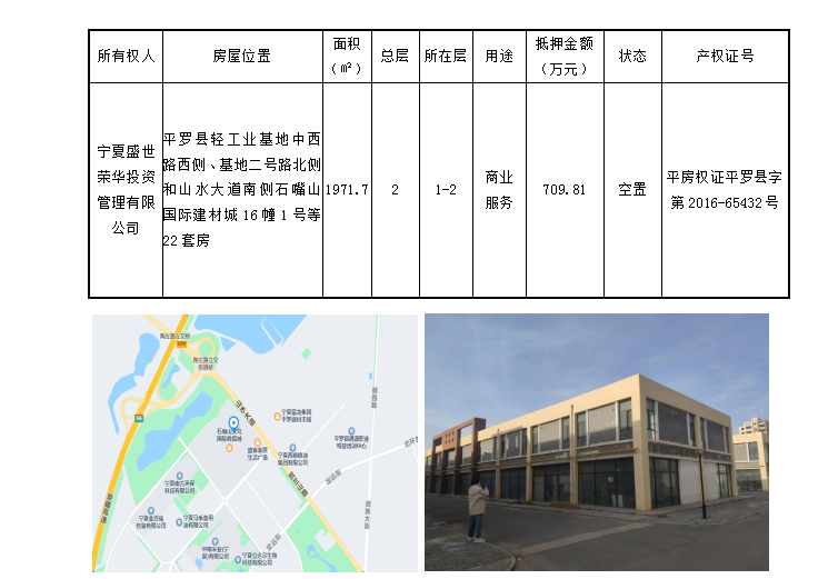 石嘴山國(guó)際建材城臨近京藏高速樞紐,交通便利,停車便捷。抵押物為聯(lián)排營(yíng)業(yè)房,門前空間大,可用于商品銷售、倉(cāng)儲(chǔ)堆料等。
