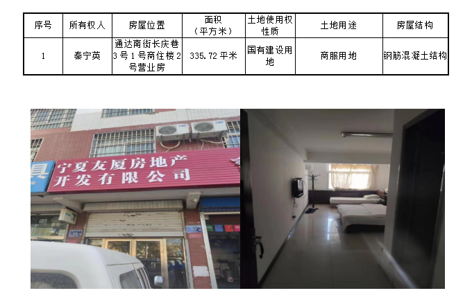 該戶債權(quán)項下抵押物位于通達(dá)南街長慶巷3號1號商住樓2號營業(yè)房,所在層數(shù)為-1至2層,總高8層,建筑面積335.72平米,2006年12月竣工??勺鳛檗k公、旅館或者培訓(xùn)教育。