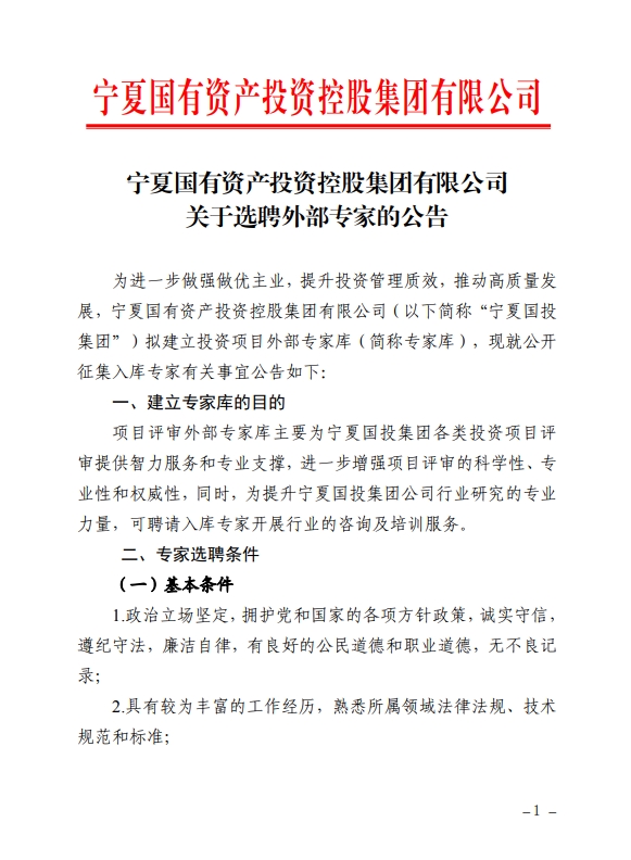附件:寧夏國有資產(chǎn)投資控股集團(tuán)有限公司外部專家申請(qǐng)表