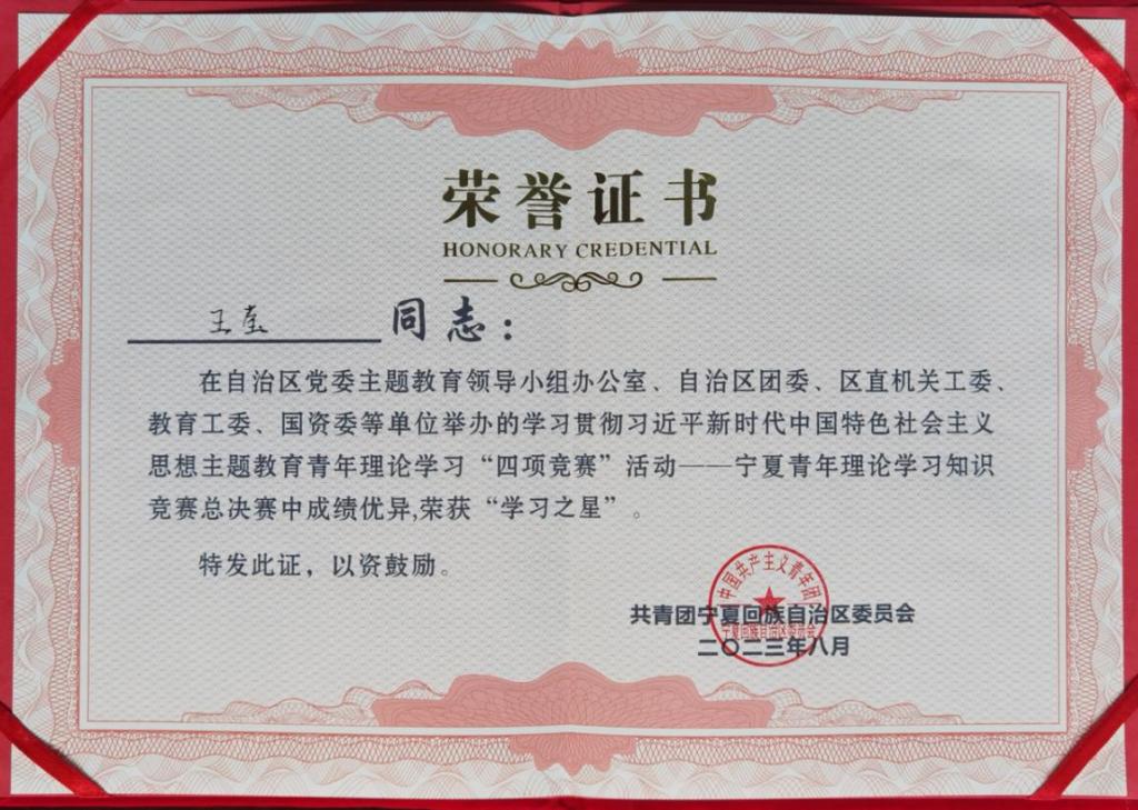 近日,在自治區(qū)學習貫徹習近平新時代中國特色社會主義思想主題教育青年理論學習“四項競賽”中,集團公司第六青年理論學習小組被評為理論學習“標桿小組”,寧夏國投基金管理有限公司員工王瑩榮獲寧夏青年理論學習知識競賽優(yōu)秀獎、學習之星稱號。