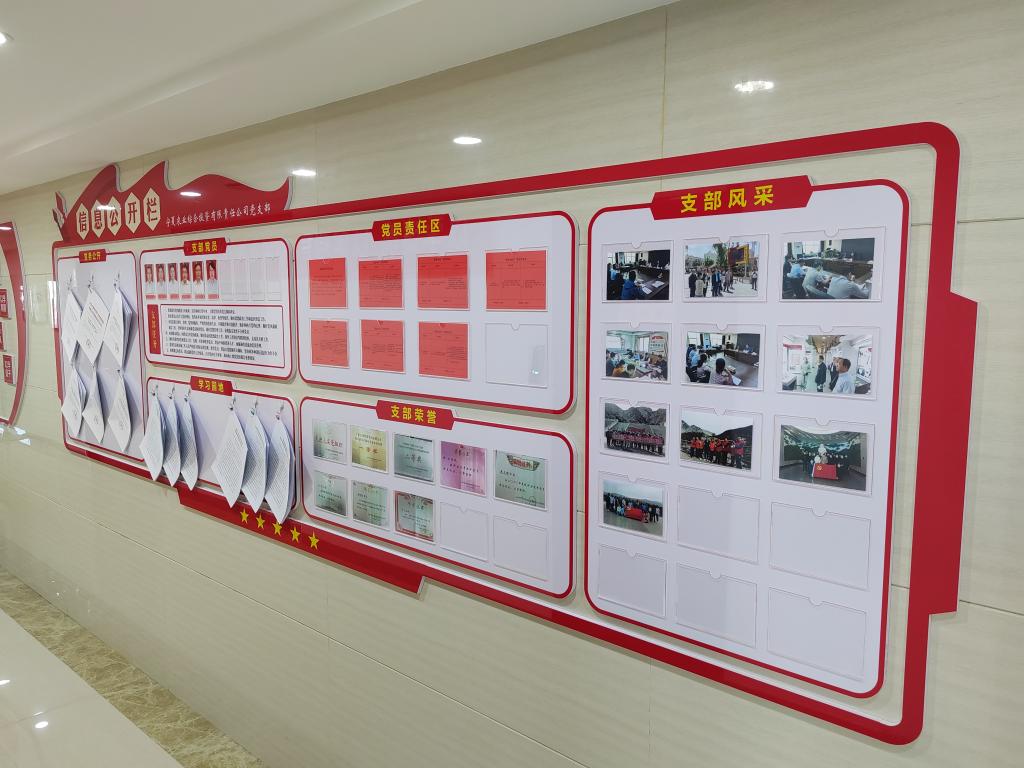黨建文化墻圍繞主題教育、黨風廉政建設、黨務信息公開等內(nèi)容,積極宣傳主題教育重要意義、根本任務和總要求等內(nèi)容,以及習近平總書記關(guān)于國企改革的重要論述,建立黨務信息公開欄,展示支部和黨員風采,建立黨員責任區(qū),進一步將黨建與業(yè)務融合。以圖文并茂的方式,將主題教育和黨建工作融入公司全體黨員員工的日常工作中,全體為黨員營造了“處處是課堂,時時受教育”的濃厚黨建氛圍,增強了黨建工作的直觀性、教育性和指導性。