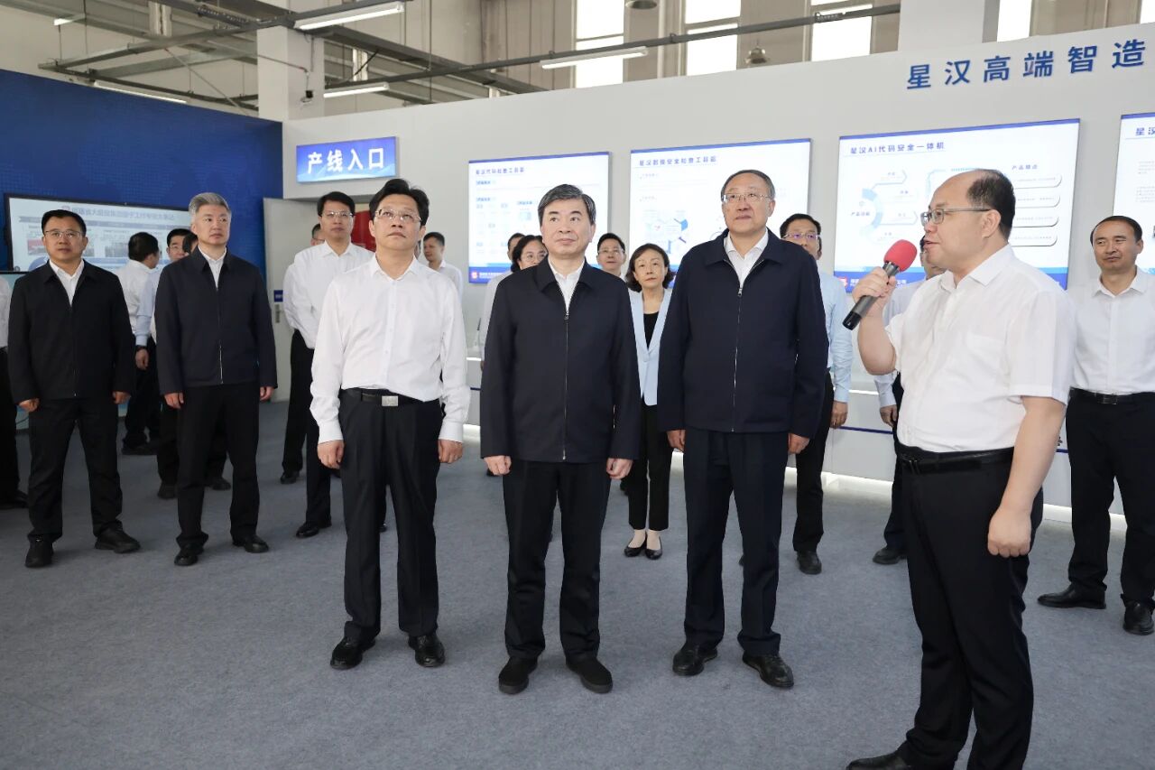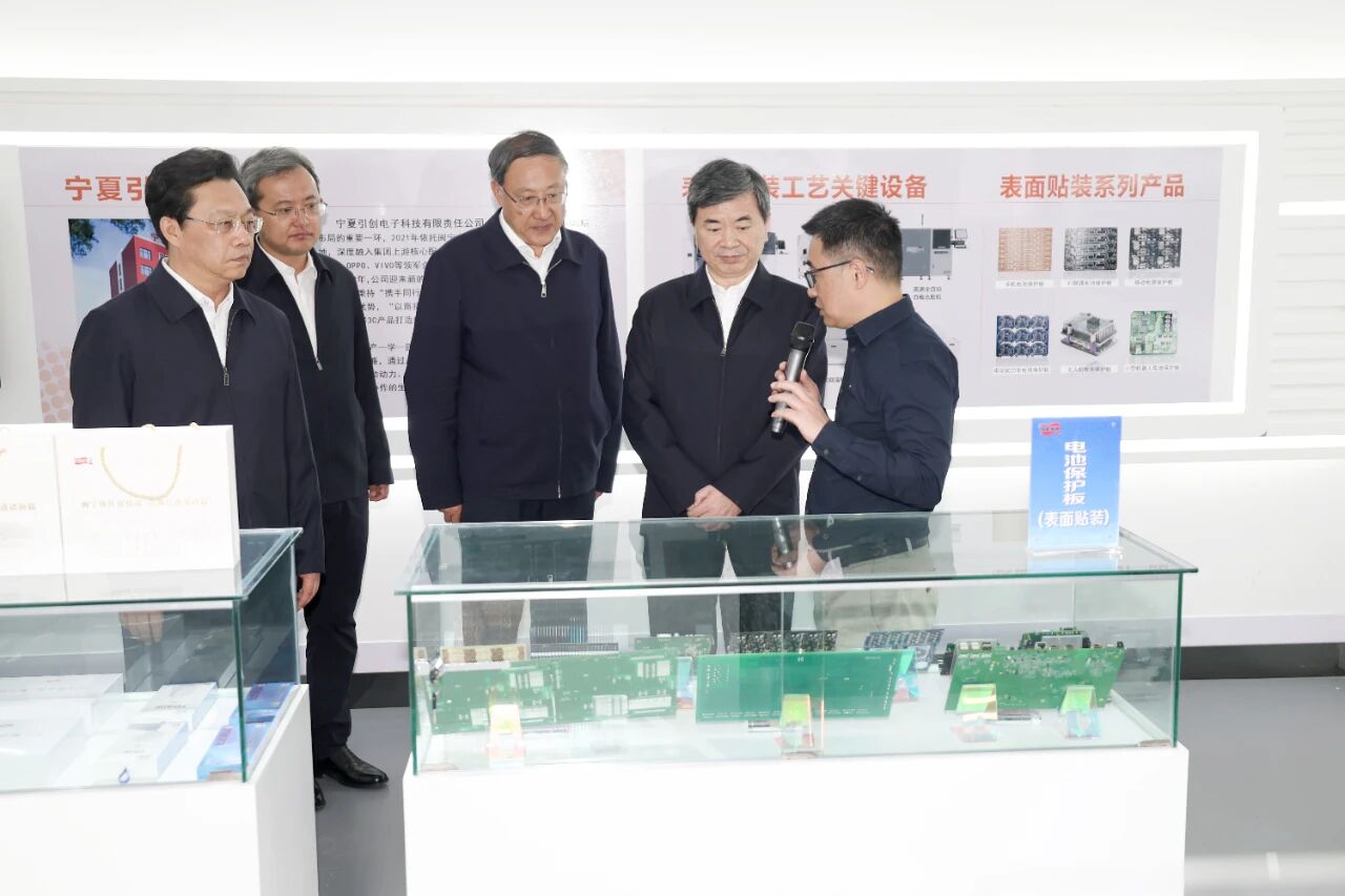 福建省黨政代表團(tuán)在閩寧鎮(zhèn)閩寧產(chǎn)業(yè)園星漢智能科技公司考察。