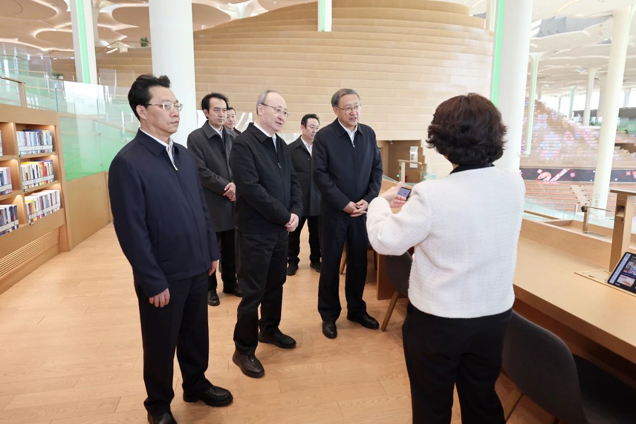 寧夏黨政代表團(tuán)在北京城市圖書館,考察智慧圖書館建設(shè)情況。