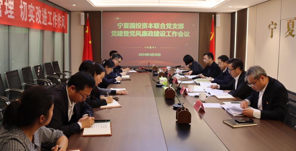 4月30日,寧夏國投資本運(yùn)營有限公司聯(lián)合黨支部召開2024年黨的建設(shè)暨黨風(fēng)廉政建設(shè)工作會(huì)議。集團(tuán)公司黨委副書記、工會(huì)主席郭聿維蒞會(huì)指導(dǎo),子企業(yè)監(jiān)督專員郭忠棟參會(huì),黨支部委員、總經(jīng)理冉建強(qiáng)主持會(huì)議。